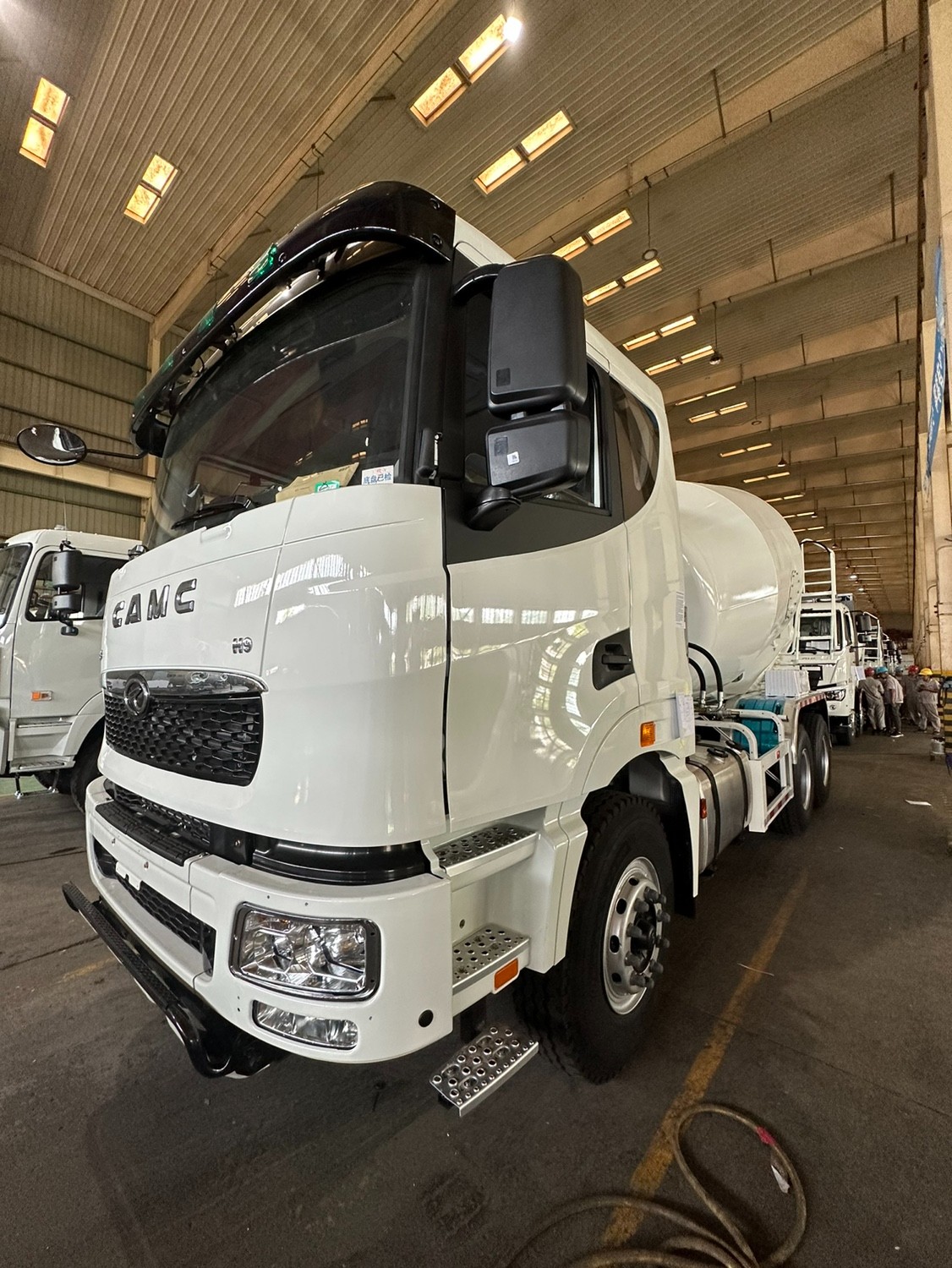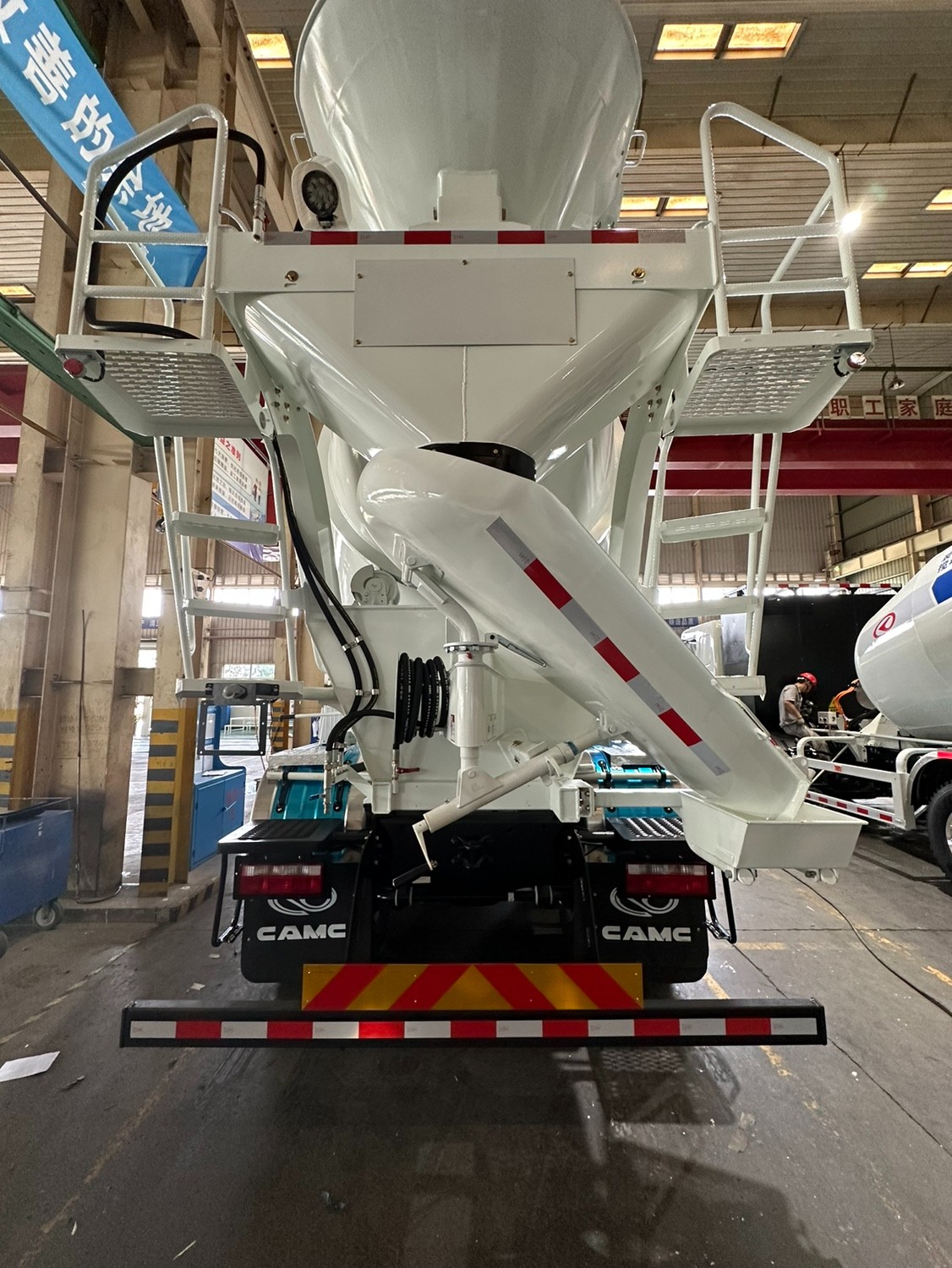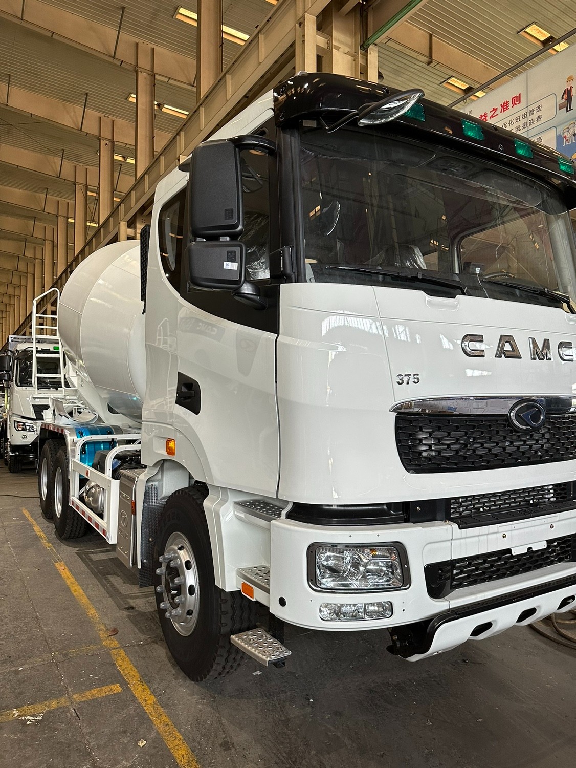 2. Our mixer truck is preferred for smart appearance, good performance and convenient operating system. It is equipped with famous engine such as Caterpillar and Cummins. This kind of mixer truck has two axles both in the front and back. It is very safe to be operated.