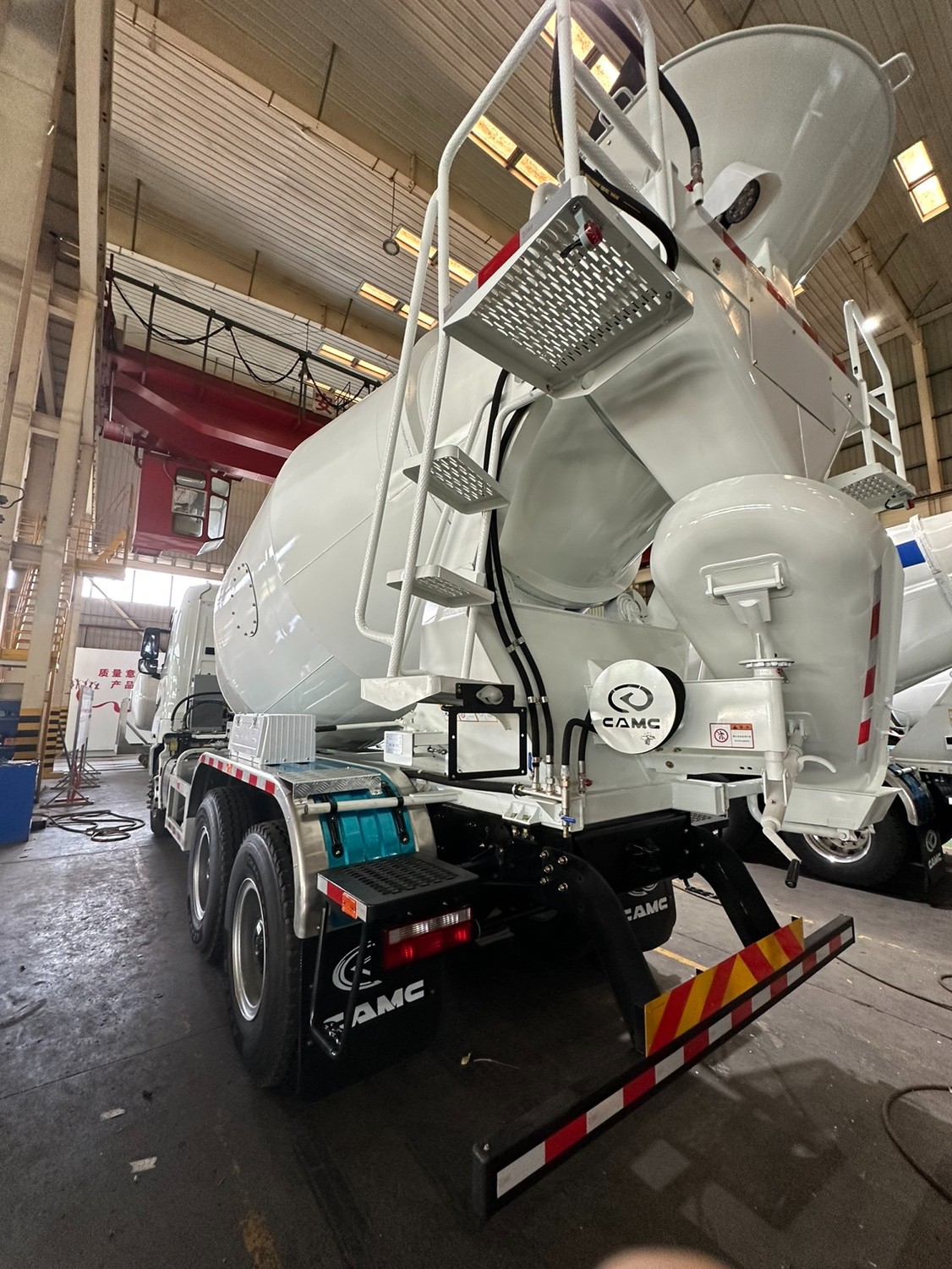 2. Our mixer truck is preferred for smart appearance, good performance and convenient operating system. It is equipped with famous engine such as Caterpillar and Cummins. This kind of mixer truck has two axles both in the front and back. It is very safe to be operated.